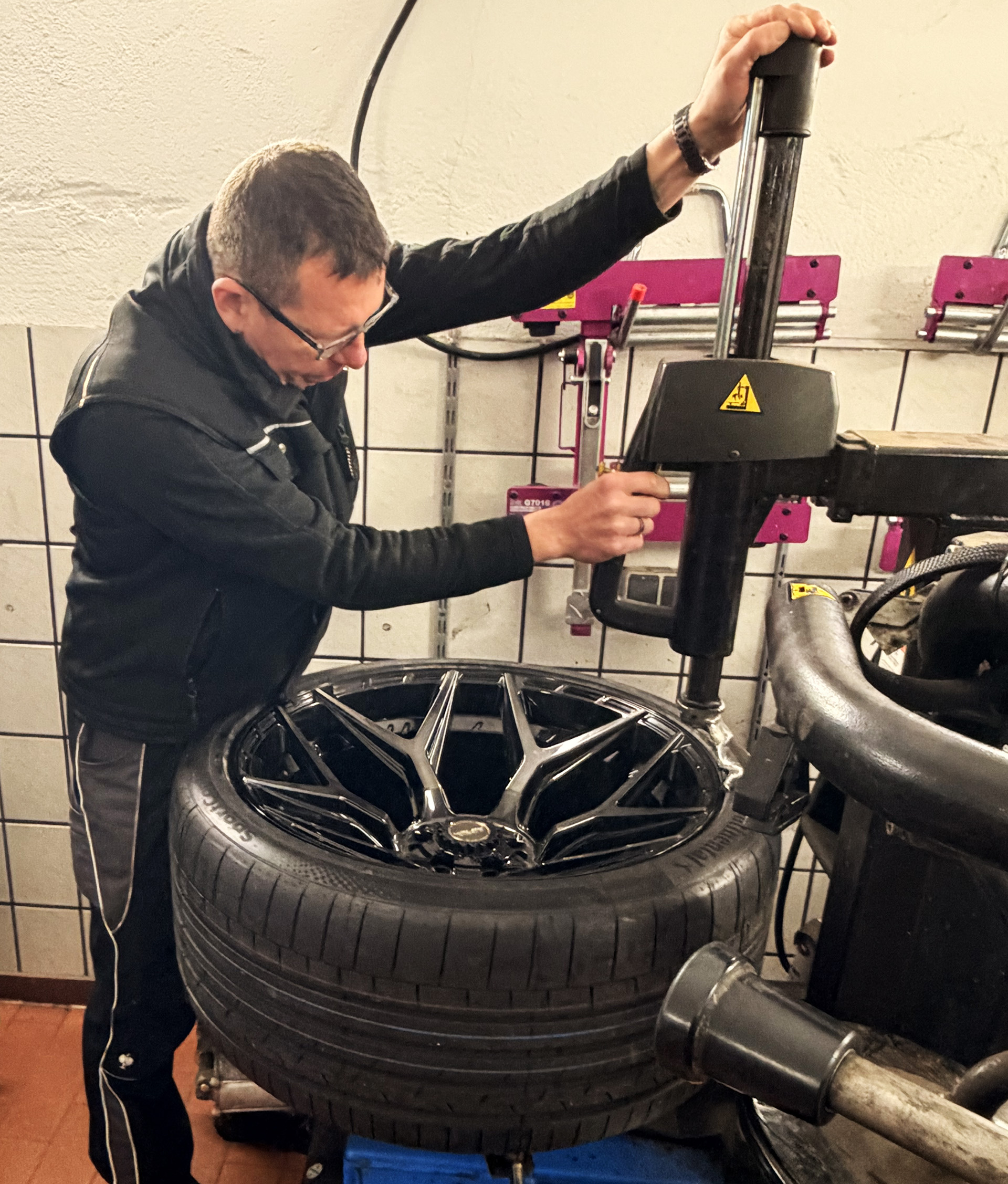 Reifen sind mittlerweile moderne Hightech-Produkte. Meine qualifizierten Mitarbeiter montieren Pneus bis zu einer Größe von 24 Zoll sorgfältig und professionell. Auch die Montage von UHP und Runflat-Reifen ist auf unserer WDK-zertifizierten Montagemaschine kein Problem. Zu unserem Leistungsspektrum gehört natürlich auch das Wuchten der Räder, die Reifenreparatur, Reifenverkauf sowie die Einlagerung von Ihren Sommer- bzw. Winterradsätzen.